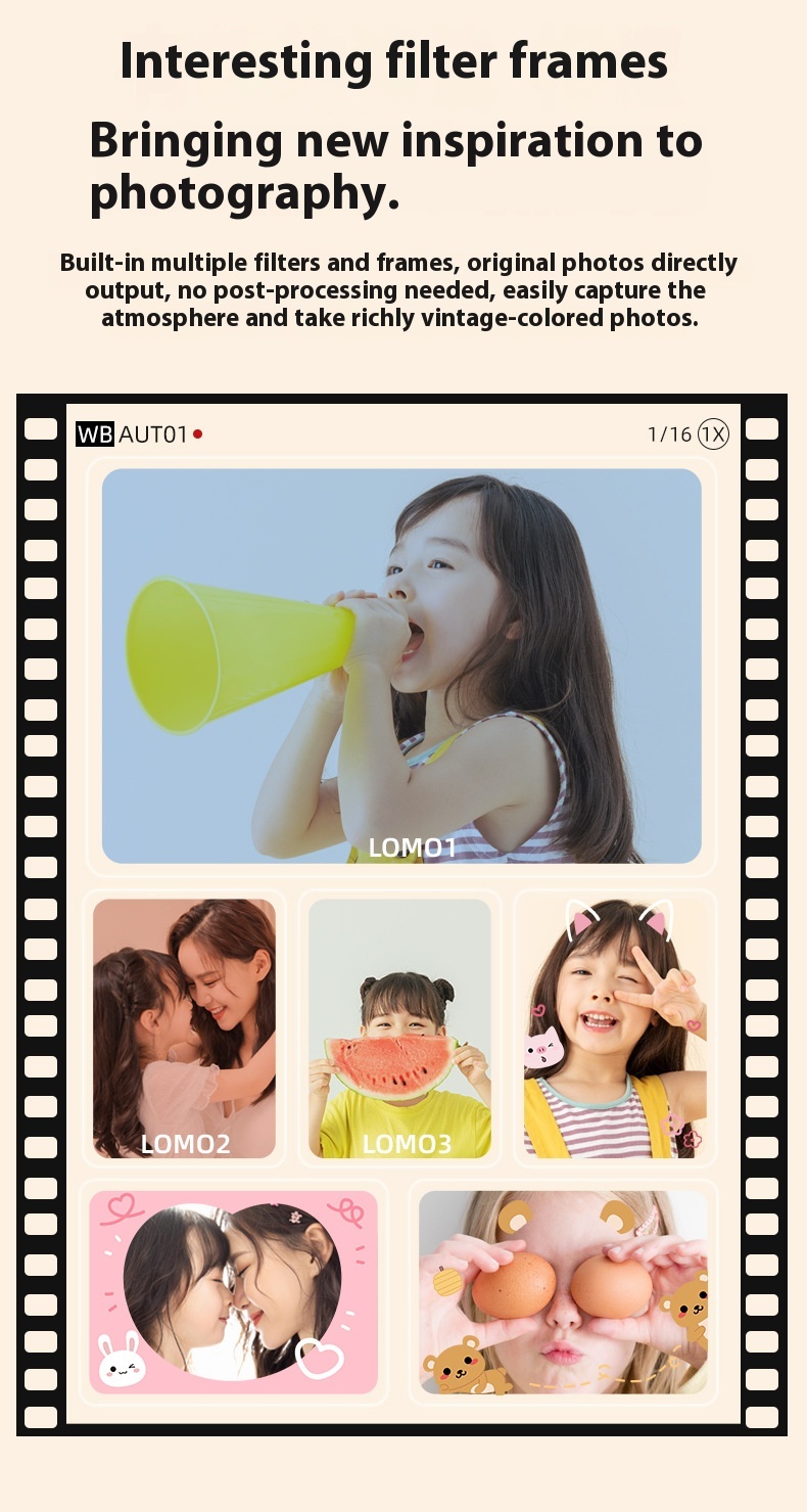 Functions: timing, photo sticker, video recording, filter, photo taking, continuous shooting
