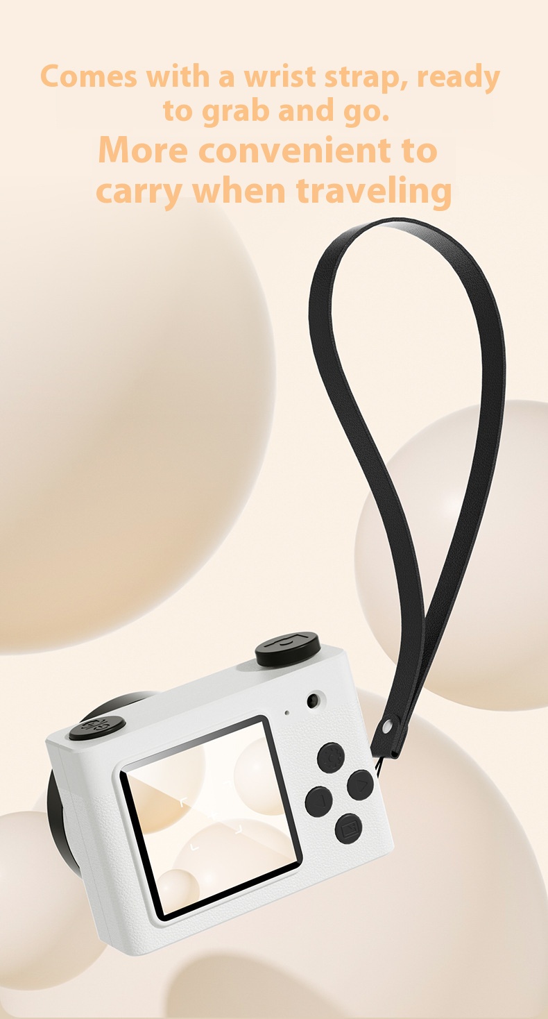 Packing List: Camera, instruction manual, sticker, carrying strap, charging cable