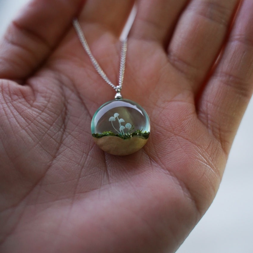 This creative pendant necklace brings the magic of the forest into your everyday style. The miniature mushroom scene encased in resin creates a three-dimensional effect that catches the light beautifully. Whether you're drawn to cottagecore aesthetics, love mushroom-themed accessories, or simply appreciate unique handmade jewelry, this pendant is the perfect addition to your collection.